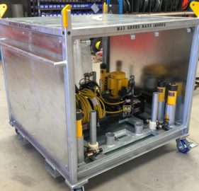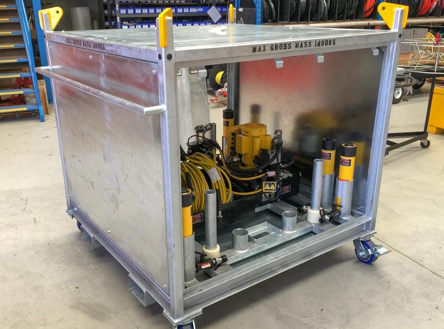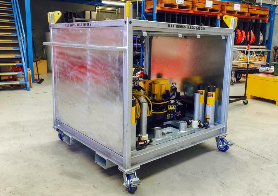 - Forklift pocket, lift points and castor wheels on HPU enclosure