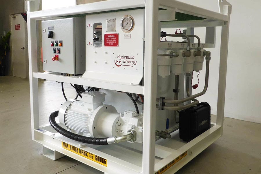 BHP engaged Hydraulic Energy Australia to design a hydraulic power unit to assist with cylinder change out on their fleet of Liebherr 996 excavators. The HPU was deigned with wireless pendant control to ensure operator safety during use. The HPU circuit design incorporated reverse flow filters for both extend and retract functions being used during a cylinder change out. All necessary adaptors and tooling to suit various OEM machines were integrated within the HPU for field operations.