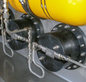The Barrier Fluid Termination Unit (BFTU) allowed controlled and precise intervention and monitoring via a ROV at pre determined intervals. With pressure compensated pressure gauges installed on the control panel a quick indication of actual pressures within the subsea pumps were able to be obtained. If the pressure readings were low an inbuilt circuit of Walther ROV hotstabs and ROV operatable ball valves was installed to allow repressurisation of the built in accumulators. The accumulators allowed a 4-6 week interval before another intervention was required.